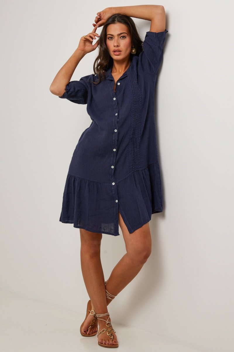 Vestido camisero de lino - 100 % lino - Azul marino