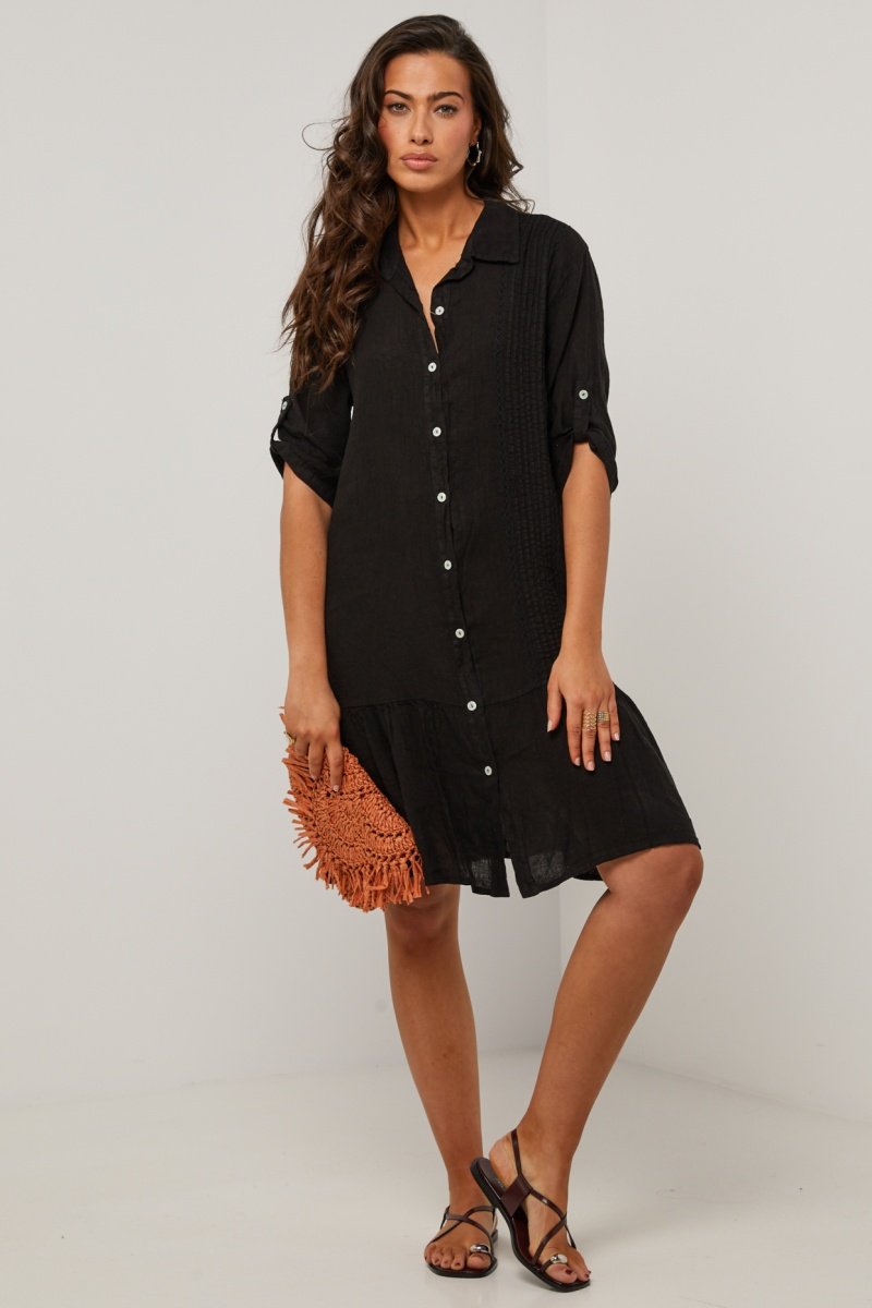 Vestido camisero de lino - 100 % lino - Negro