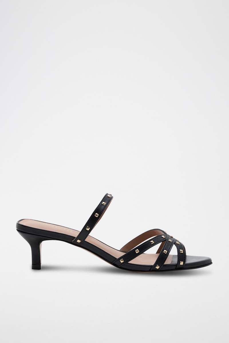 Sandalias de piel bovina de tacón Anna - Negro