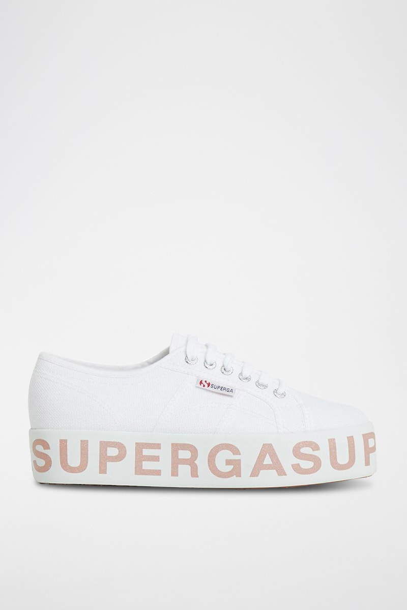 Zapatillas con plataforma 2790-COTW GLITTERLETTERIN - Blanco y rosa
