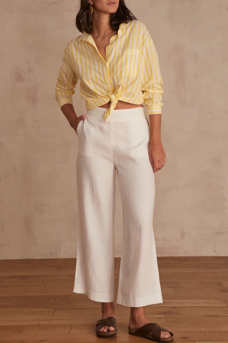 Pantalón 7/8 de lino de tiro alto - Blanco