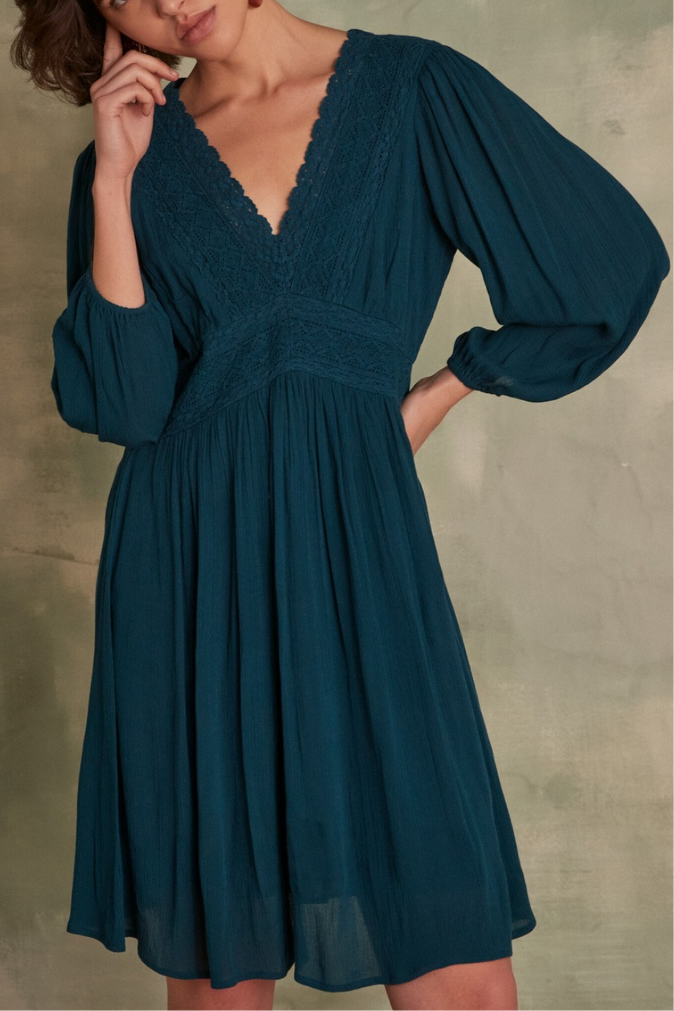 Vestido evasé - Azul petróleo