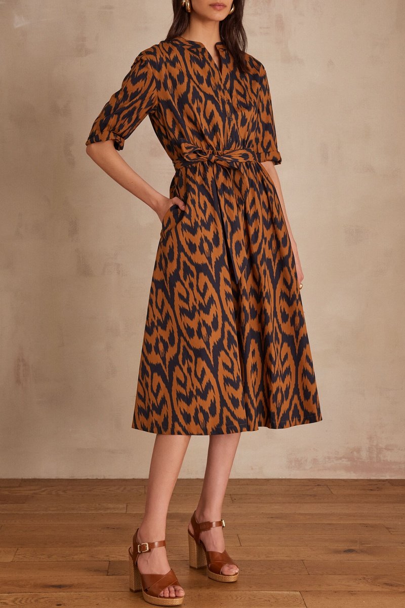 Vestido midi - marrón claro y negro