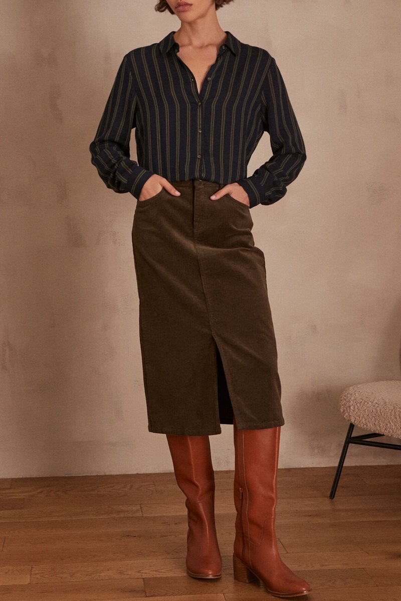 Falda midi de pana - Caqui