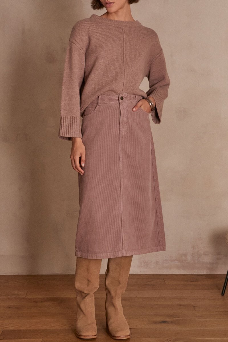 Falda recta de terciopelo de talle alto - Rosa oscuro