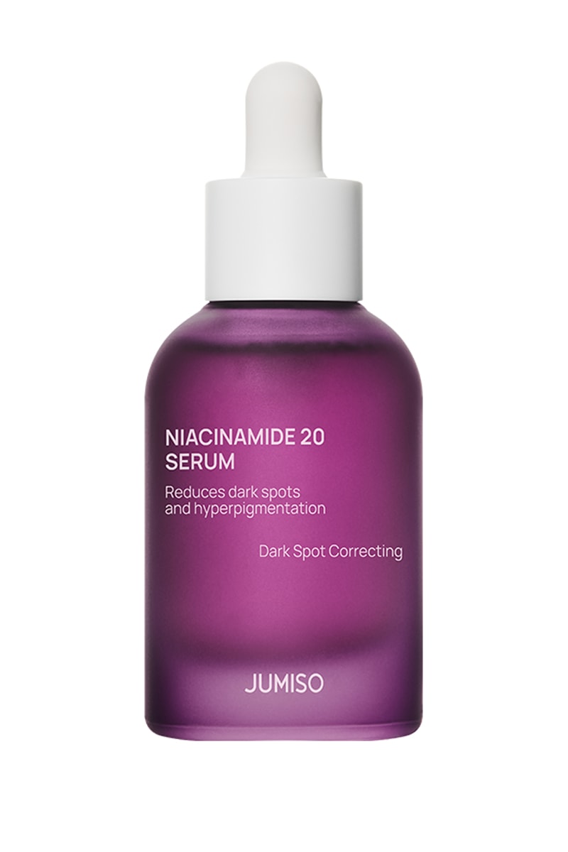 El Niacinamide 20 Serum JUMISO es una fórmula despigmentante y perfeccionadora de alta concentración que combina un 20 % de niacinamida con ácido tranexámico, glutatión y un triple complejo de centella para difuminar las manchas pigmentarias, regular el exceso de sebo y calmar las rojeces.