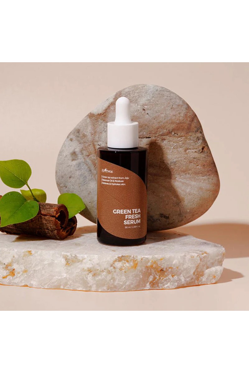 Sérum ligero formulado con extracto de té verde para hidratar, calmar las irritaciones y mejorar la textura de la piel.