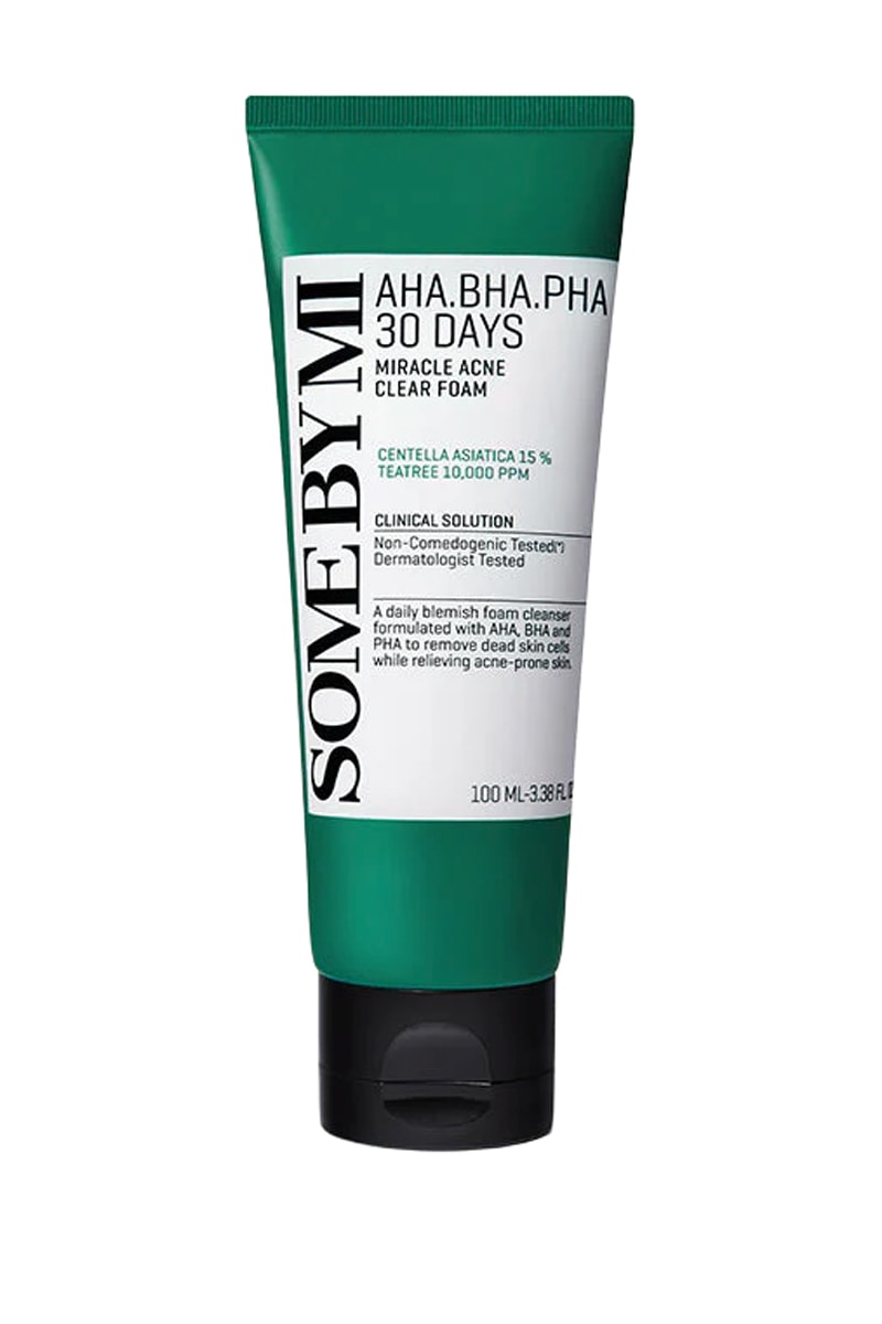 El AHA BHA PHA 30 Days Miracle Acne Clear Foam Some By Mi es un limpiador antiacné que ayuda a afinar la textura de la piel y a controlar el exceso de sebo.