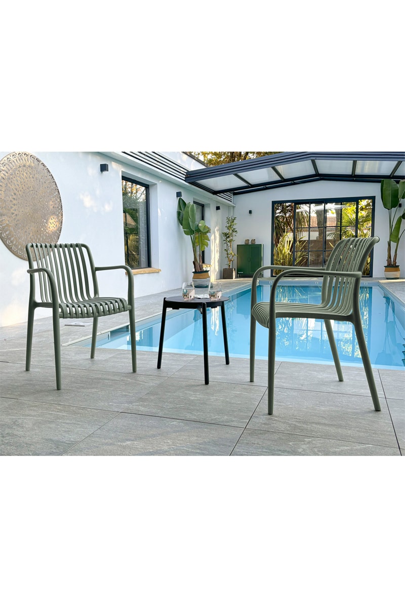 Estable y apilable, aporta un toque fino y moderno a tu jardín o terraza.