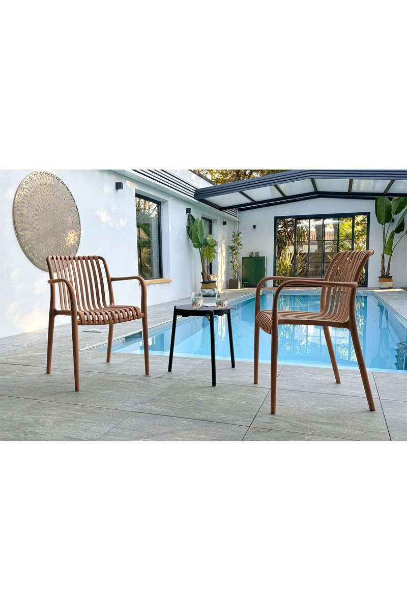 Estable y apilable, aporta un toque fino y moderno a tu jardín o terraza.