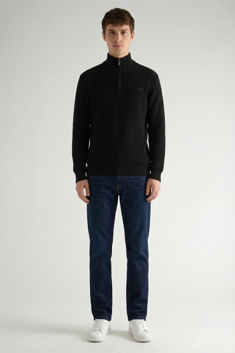 Cuello alto con cremallera.