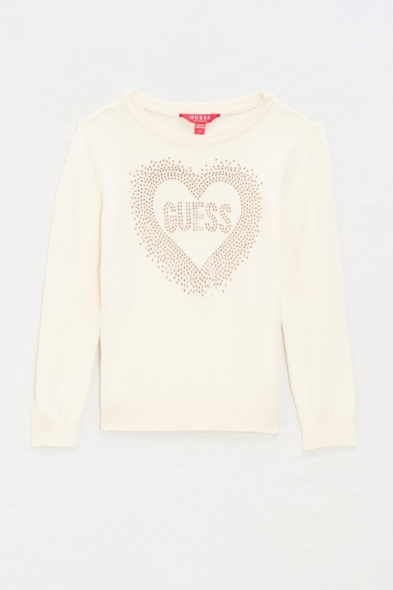 Estampado de corazón y logo de strass delante.