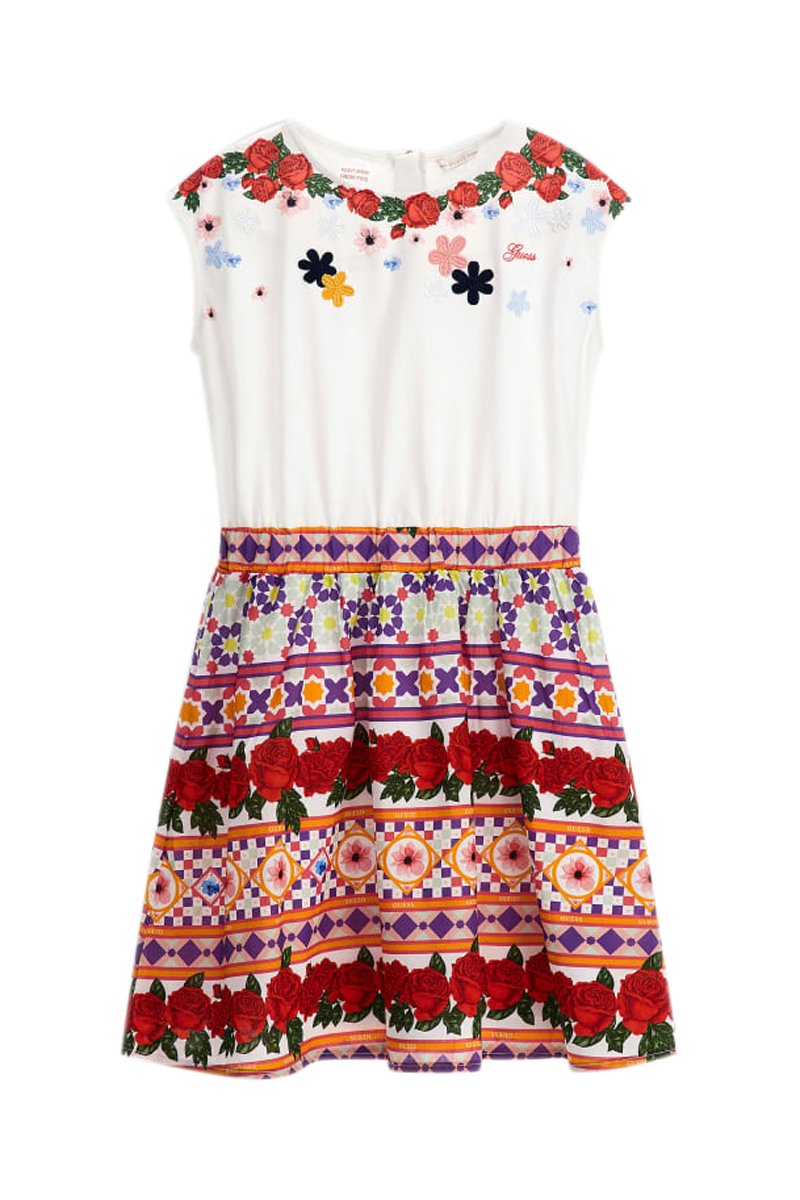 Vestido - Blanco y burdeos
