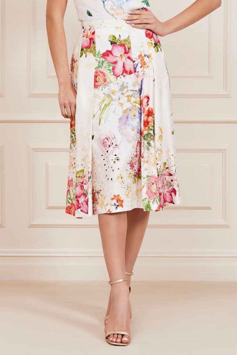 Falda evasé de lino mezclado.