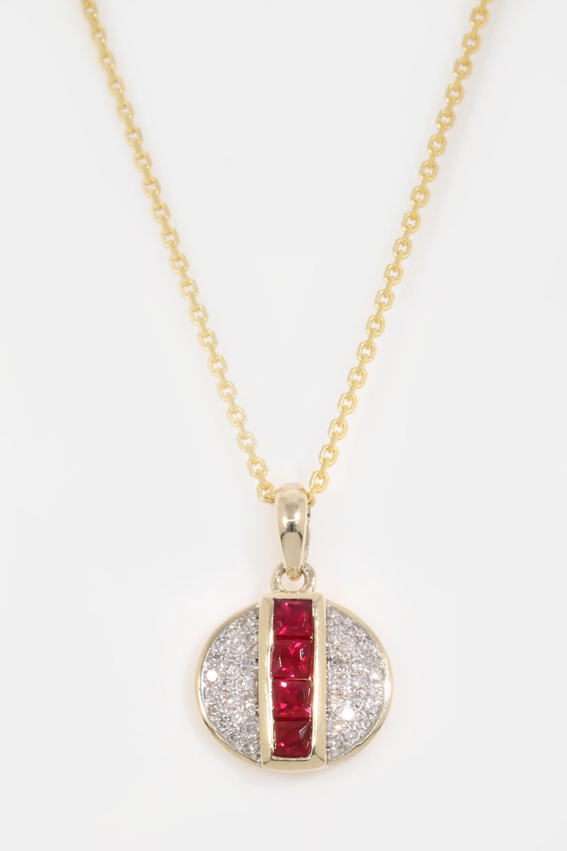 Colgante de oro amarillo con 40 diamantes y 4 rubíes.