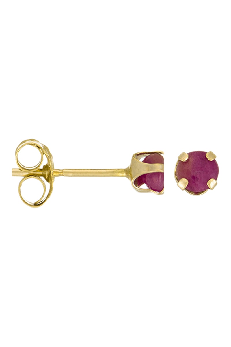 Dormilonas de oro amarillo con 2 rubíes.