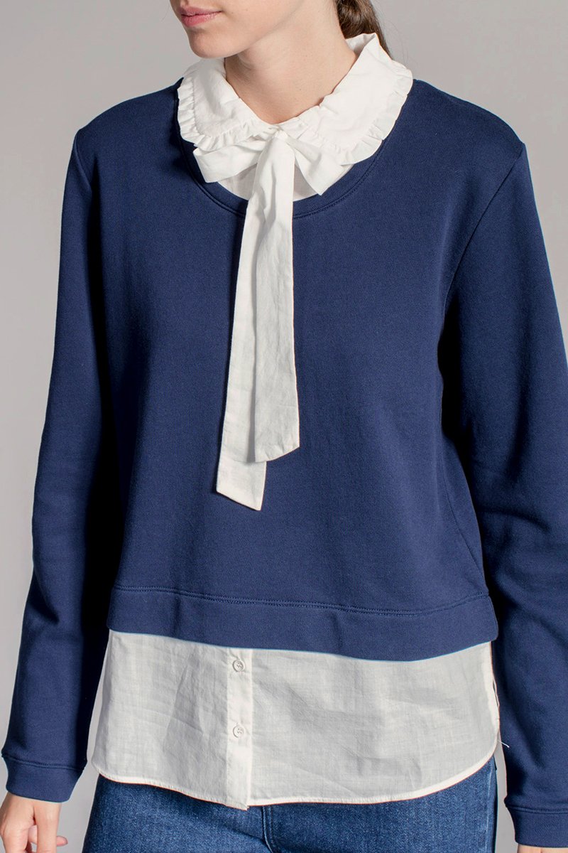 Jersey efecto doble prenda Simon - Azul marino y blanco