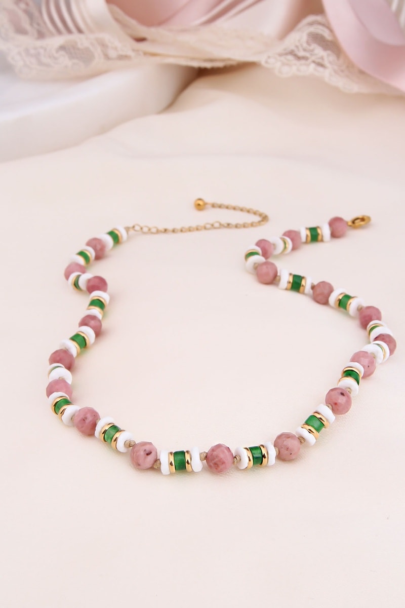 Collar - Chapado en oro amarillo y jaspes