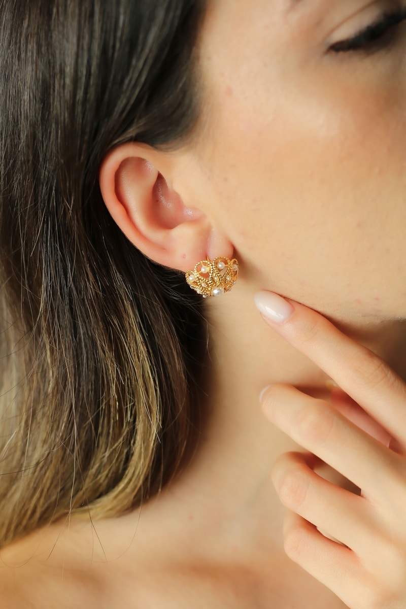 Dormilonas chapadas en oro amarillo con perlas cultivadas.