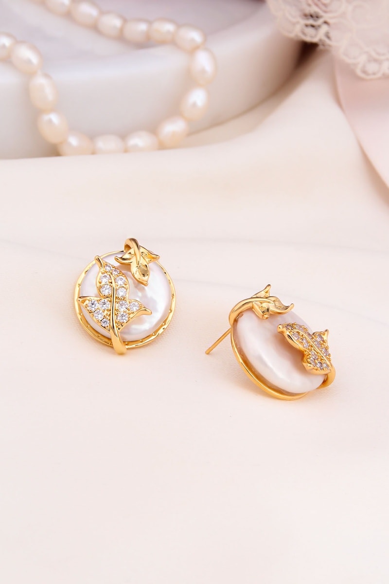 Material: latón chapado en oro amarillo, acero inoxidable chapado en oro amarillo, nácar y circones