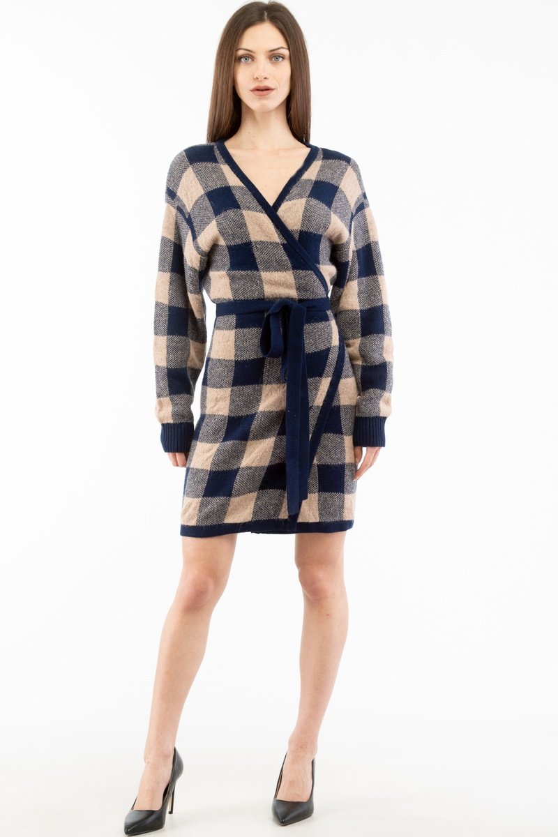 Vestido cruzado de lana y cachemir mezclados.
