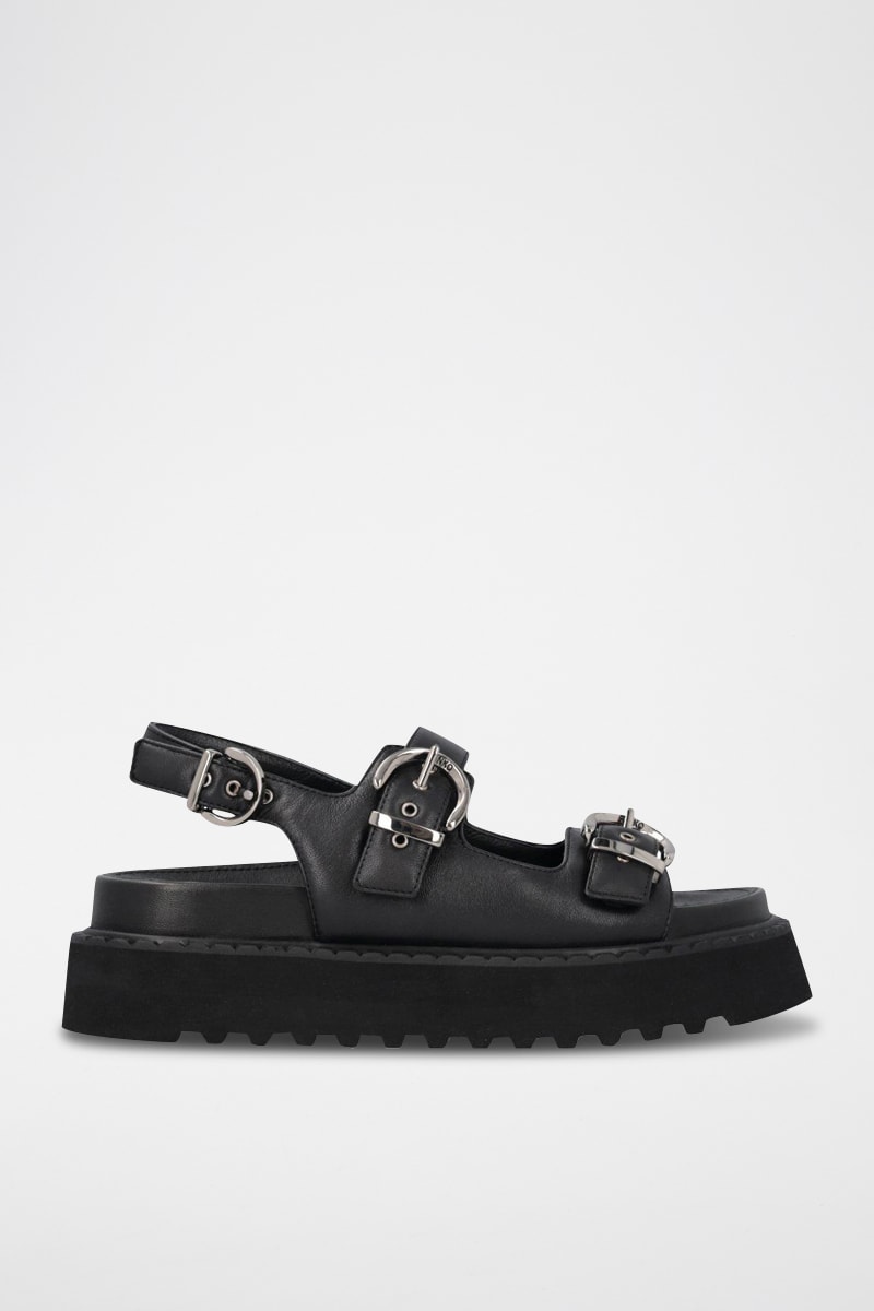 Sandalias de piel con plataforma - Negro