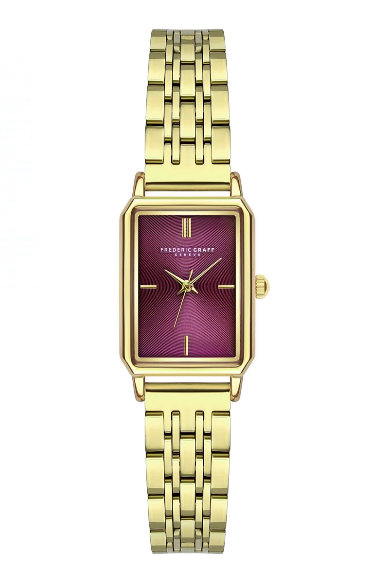 Reloj de cuarzo de acero - Dorado y burdeos - Frederic Graff