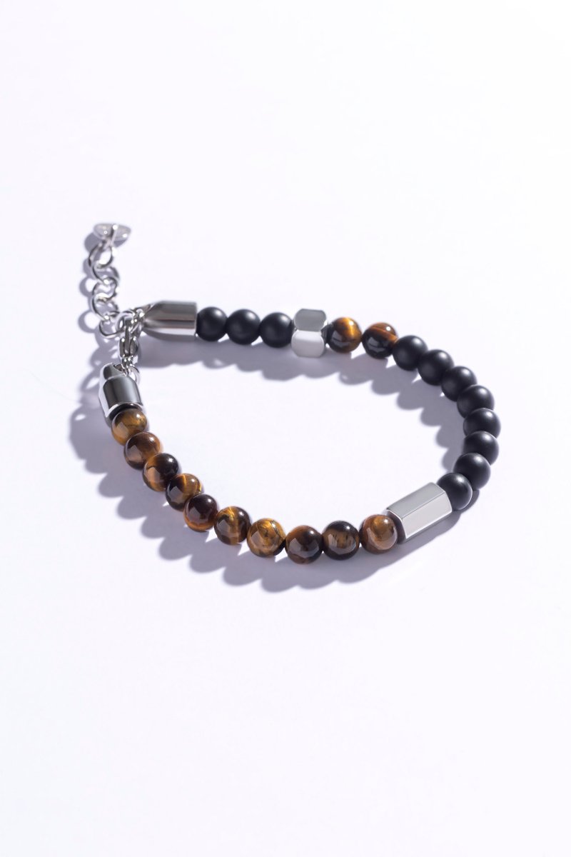 Material: ojos de tigre, perlas de cristal y acero inoxidable