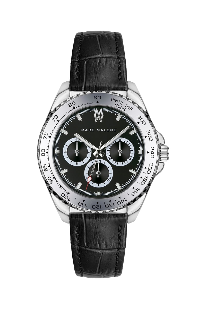 Reloj de cuarzo de piel - Negro y plateado