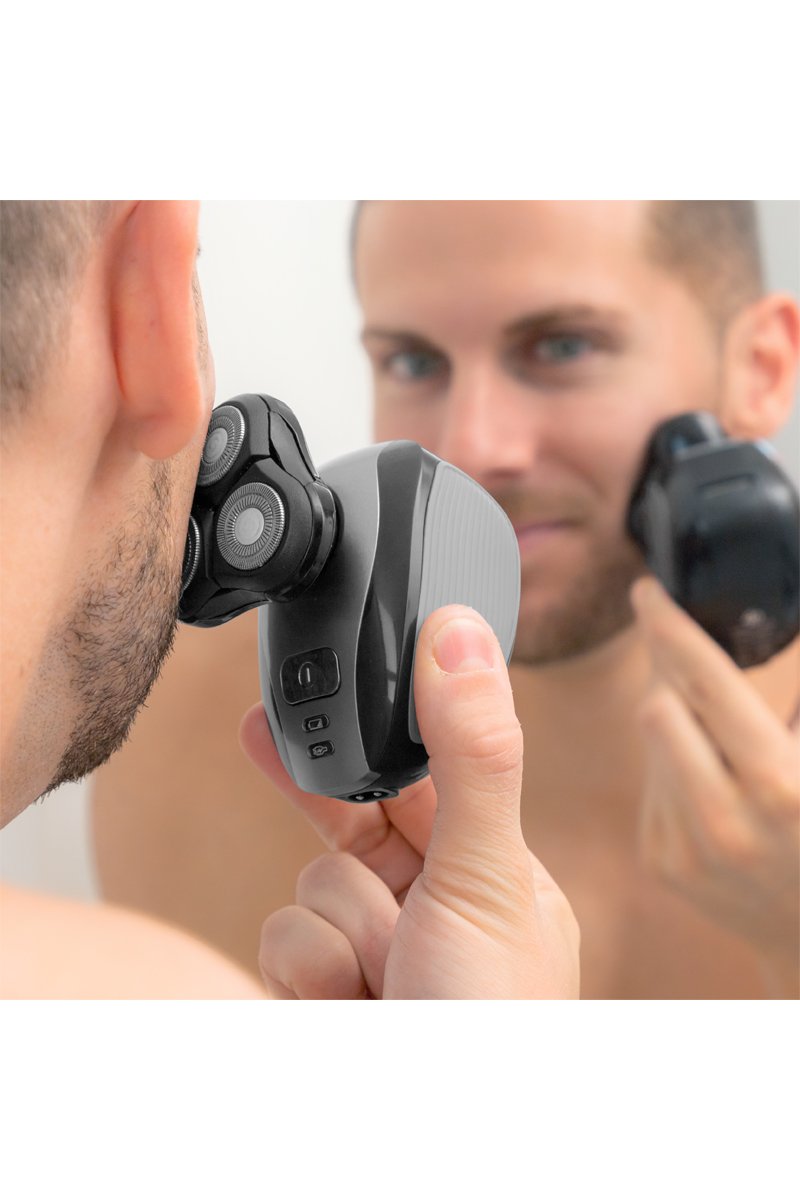 Maquinilla de afeitar eléctrica ergonómica recargable.