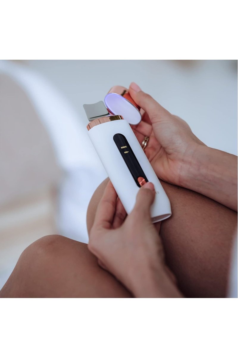 Combina ultrasonidos, ionización positiva y luz fotónica azul para limpiar y eliminar las pieles muertas y queratinizadas.