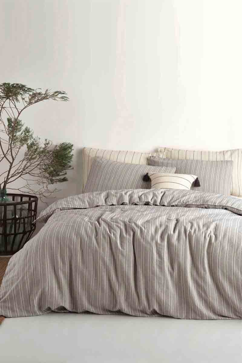 Juego de nórdico de algodón 50 hilos/cm² - Gris y beige