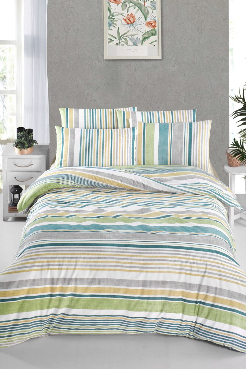 Juego de nórdico de algodón reforzado 57 hilos/cm² Sanvi - Verde y gris