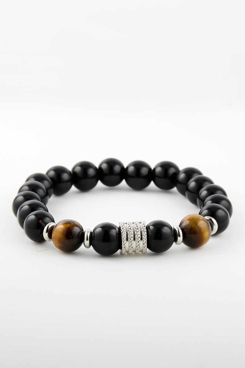 Material: obsidiana, ojo de tigre y acero inoxidable