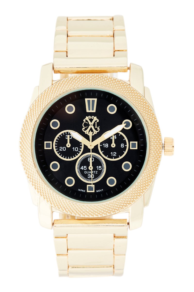 Reloj de cuarzo de aleación - Dorado y negro - Cronógrafo