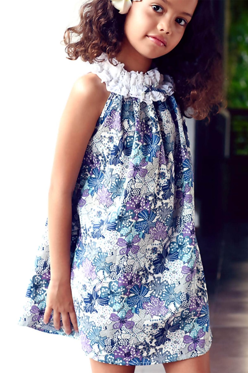 Cuello redondo avolantado. Estampado de flores.