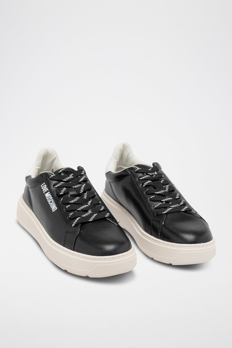 Zapatillas de piel con plataforma - Negro