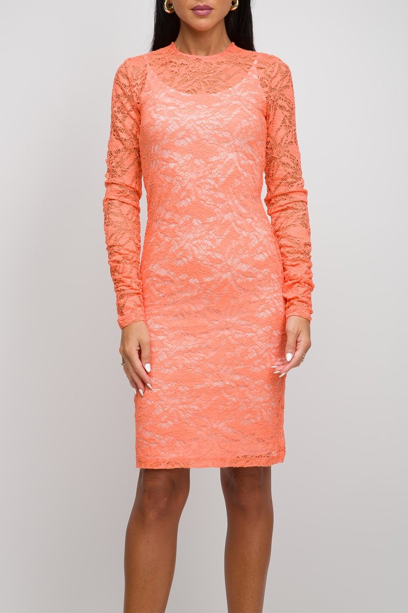 Vestido de tubo de encaje - Coral