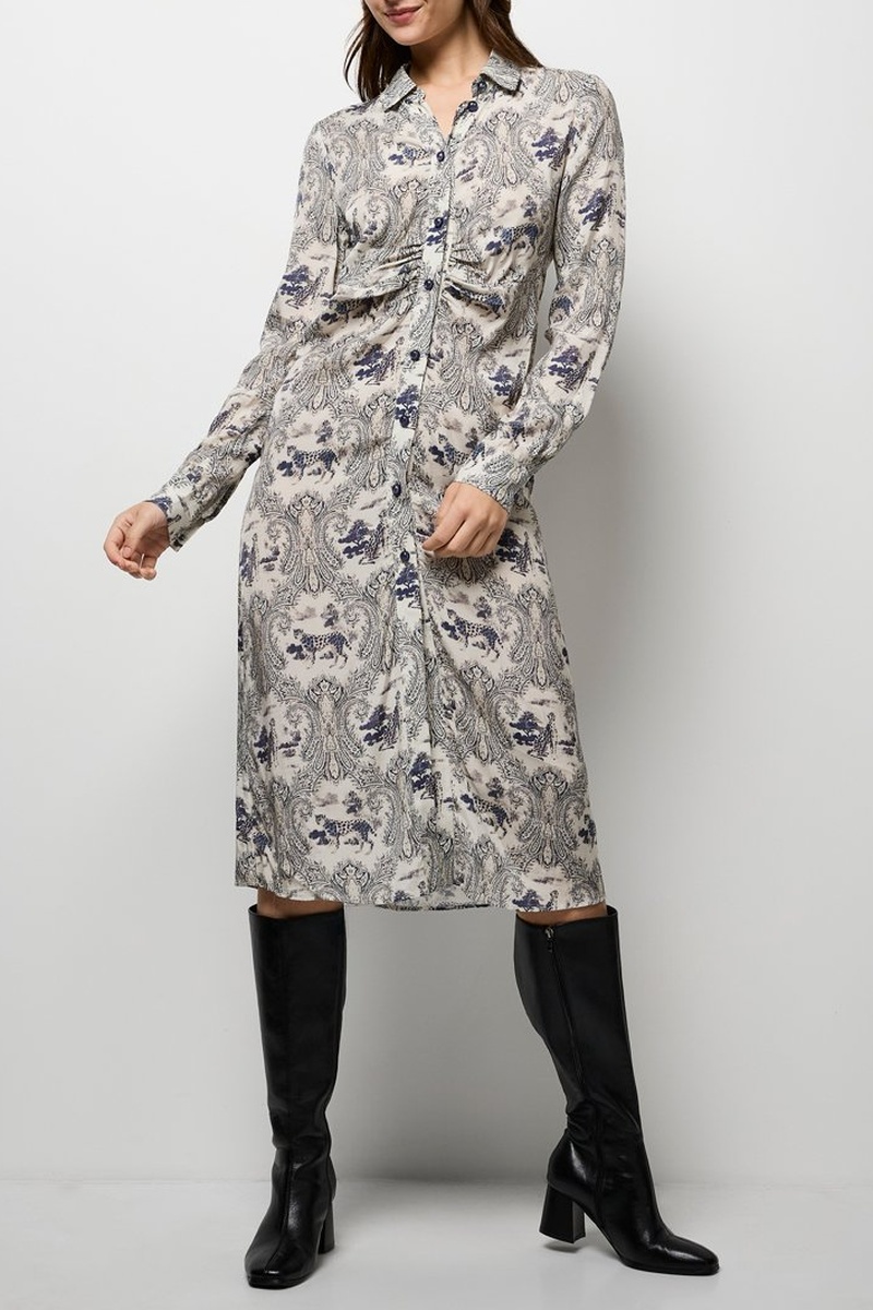 Vestido camisero - Beige y azul marino