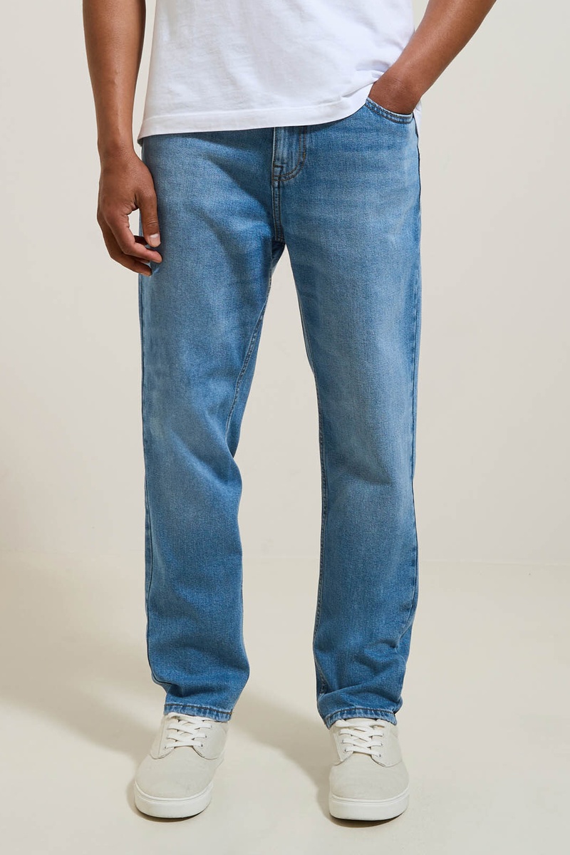 Corte relax, ancho en el muslo y ajustado en el bajo.