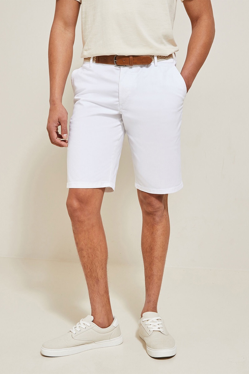 Las bermudas estilo chino liso son una prenda indispensable del armario masculino. Para llevar con una camiseta, un polo, una camisa.