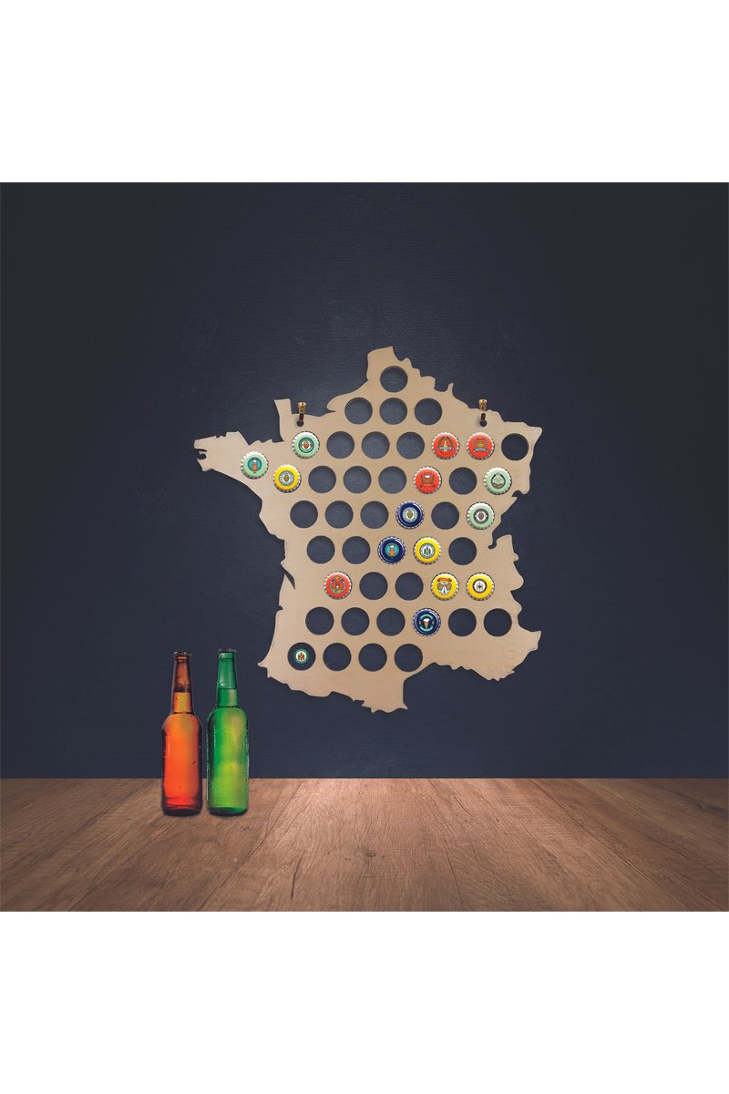 Mapa de Francia para coleccionar chapas de cerveza - 38,2 x 0,4 x 39 cm
