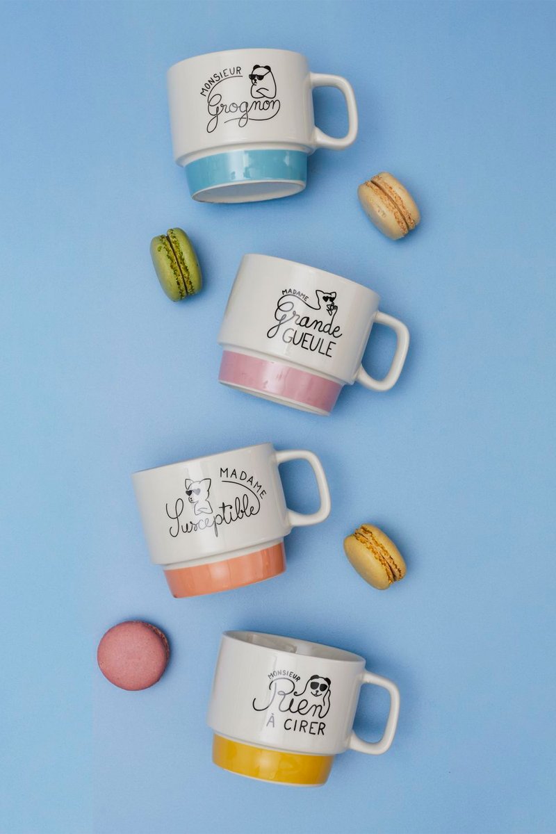 Estuche de 4 tazas apilables de porcelana - 8 x 10 x 22,5 cm