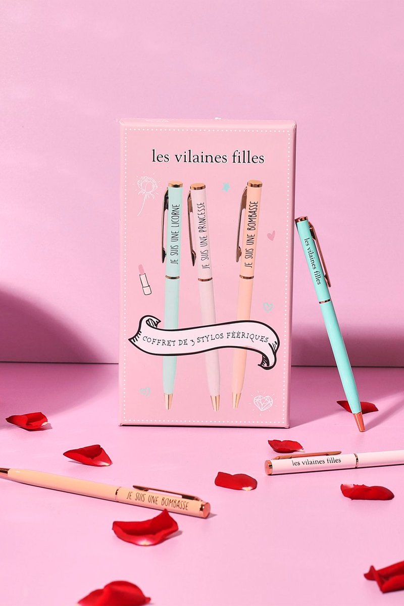 Estuche de 3 bolígrafos - Rosa y azul claro
