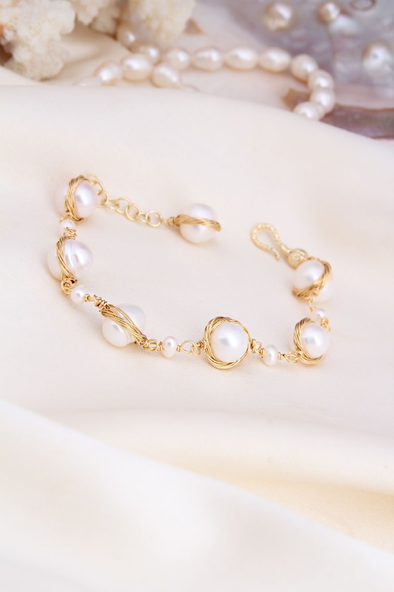 Pulsera chapada en oro amarillo con 12 perlas cultivadas.