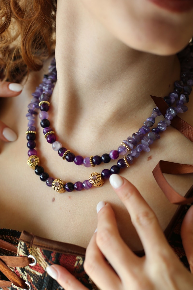 Material: latón, cobre chapado en oro amarillo, amatistas y circones