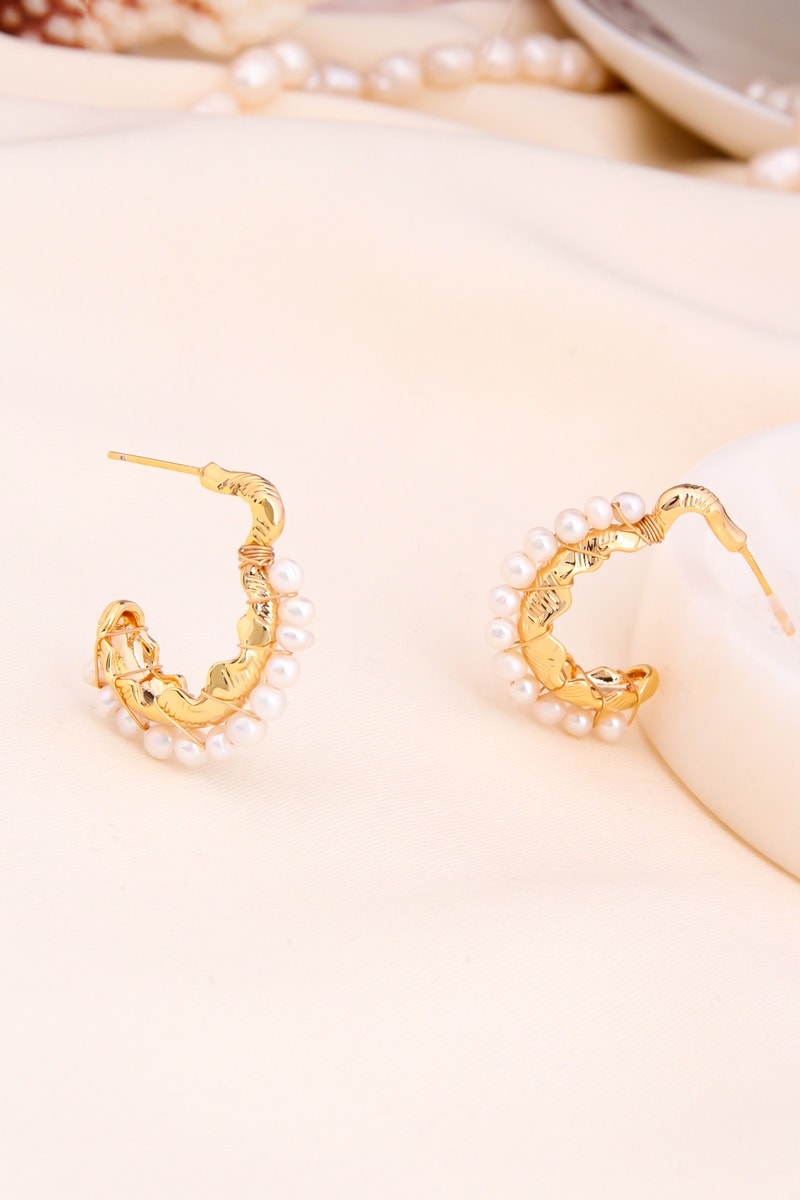 Pendientes chapados en oro amarillo con 11 perlas de imitación.