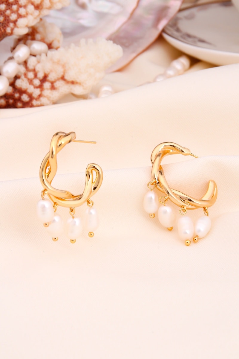 Criollas chapadas en oro amarillo con 4 perlas de imitación.
