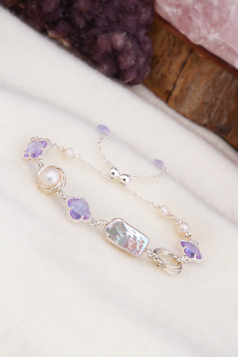 Pulsera chapada en oro amarillo con 6 circones y 4 perlas de imitación.