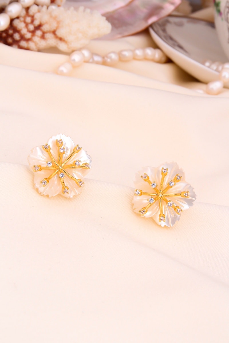 Dormilonas chapadas en oro amarillo con nácar y cristales.
